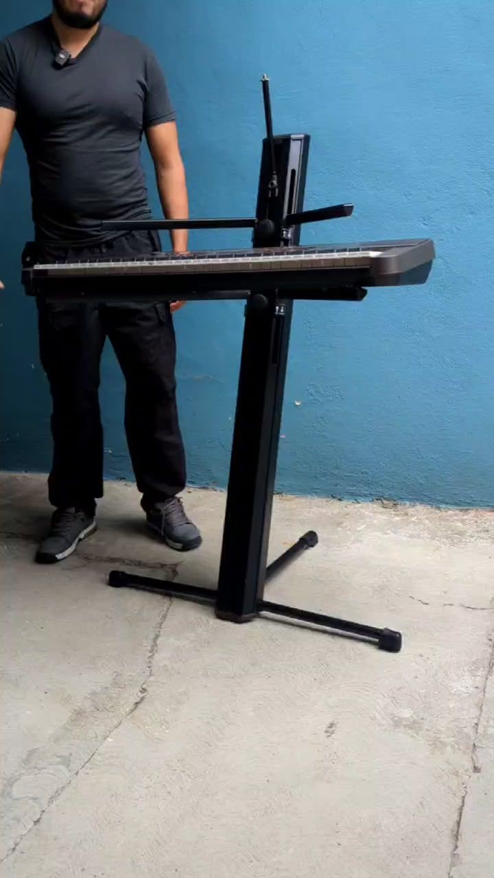 Con 4 brazos ajustables, este soporte permite una personalización en la altura, alcanzando hasta 1.2 m, para adaptarse a diferentes necesidades y estilos de ejecución. Su diseño plegable facilita su transporte y almacenamiento, ideal para aquellos que están siempre en movimiento o que cuentan con un espacio limitado.