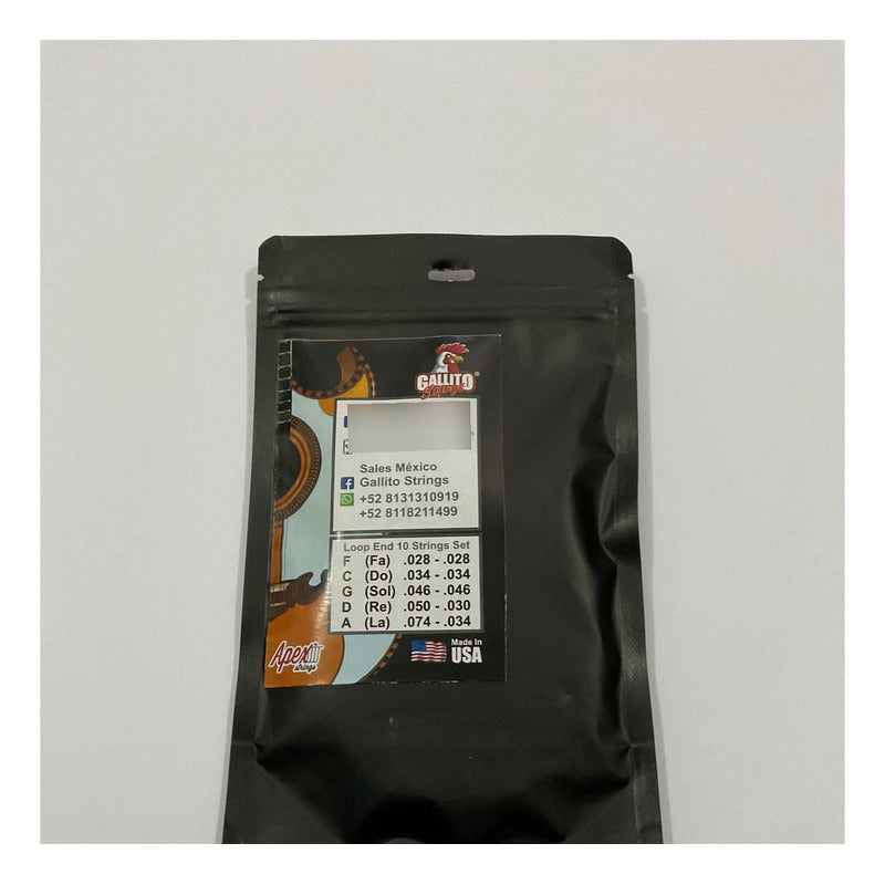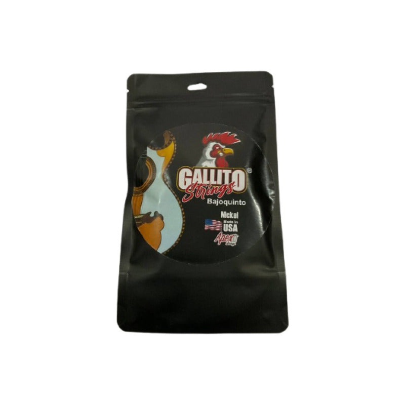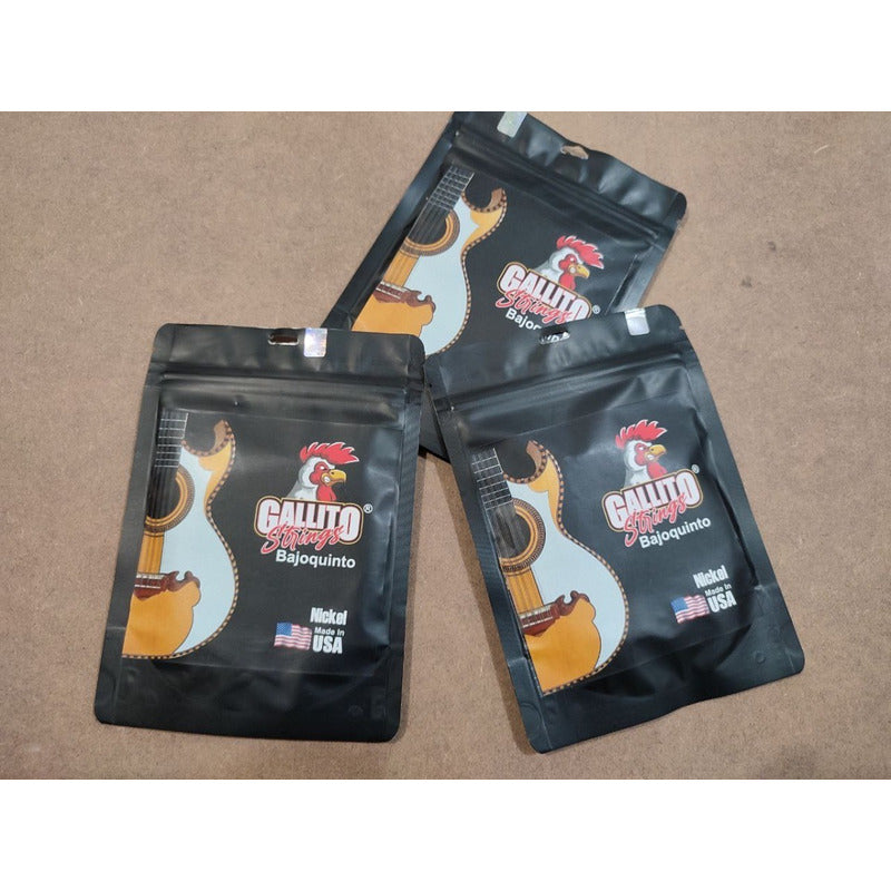 Cuerdas para bajo Quinto Marca Gallito! Hechas en USA! Excelente calidad y Sonido! muy equilibradas! 10 CUERDAS POR PAQUETE, loop end. A partir de 3 unidades ML te hace descuento en el envio! Manejamos mas cuerdas para bajo quinto.