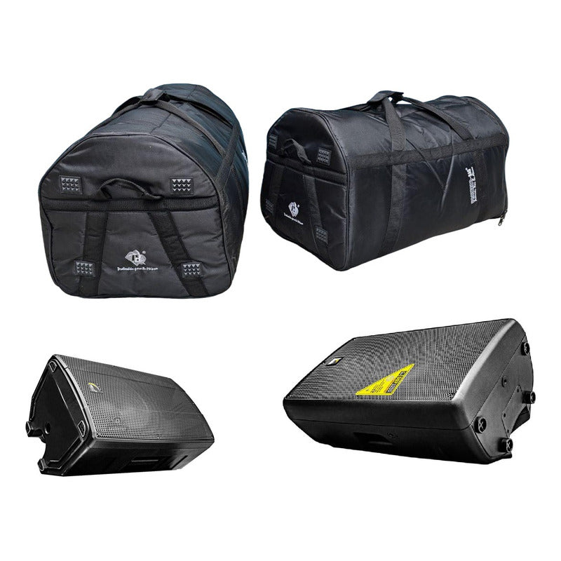 Por favor corroborar las medidas antes de comprar, las medidas están en las fotos, de igual manera las dejo aquí abajo Protege tus bocinas de 15" con este par de fundas reforzadas de la marca Protectobag. Fabricadas en poliuretano textil plastificado, garantizan resistencia y durabilidad. Con una altura de 43 cm, ancho de 44 cm y largo de 75 cm, se adaptan perfectamente a tus bocinas. Mantén tus equipos seguros y libres de daños con estas fundas impermeables. Trae agarradera, impermeables doble cierre, acolchonadas Tiene doble agarradera además de una bolsa en el exterior para guardar cables Entra la mayoría bocina de las marcas más comerciales como.. Melo DSP 1540 (entra bien) Yamaha DXR15 (entra bien) Yamaha DBR15 (entra bien) JBL EON 615 (Queda poco holgada) JBL EON 715 (queda poco holagada)