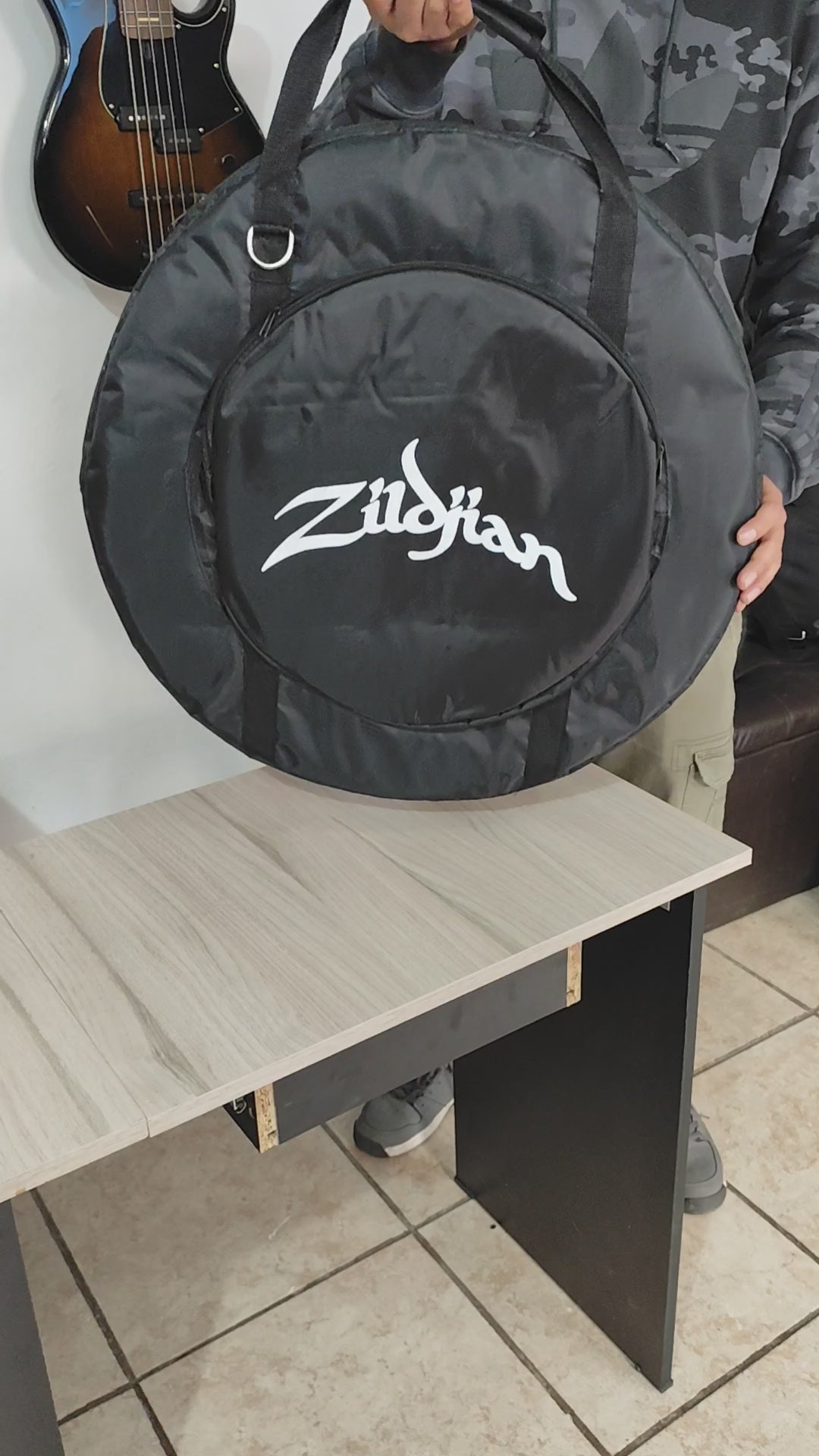 Funda reforzada para platillos de batería Logo Zildjan, espacio para hithats IMPERMEABLE Para hasta 22" Medidas: 60 cm diámetro Correa para usar al hombro ARTICULO TOTALMENTE NUEVO! Protege tus platillos de batería con la Funda Para Platillos De Batería Zildjian Logo Separadores de la marca ProtectoBag. Con un diámetro de 60 cm y una altura de 60 cm, esta funda es perfecta para guardar y transportar tus platillos de forma segura. Fabricada con poliuretano textil, ofrece una protección óptima contra golpes y arañazos. Su diseño de separadores individuales evita que los platillos se rocen entre sí, manteniéndolos en perfecto estado. Con un ancho de 4 cm, esta funda es compacta y fácil de llevar. Ideal para músicos profesionales y aficionados que buscan una solución práctica y duradera para proteger sus platillos de batería.